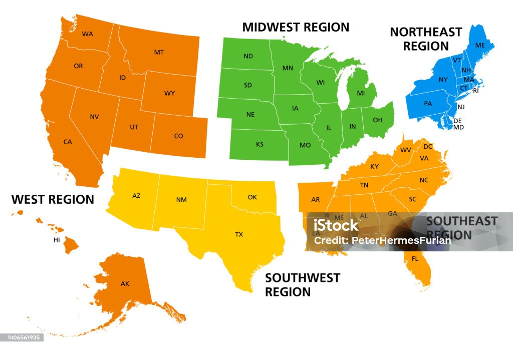 Map Of The United States With Regions